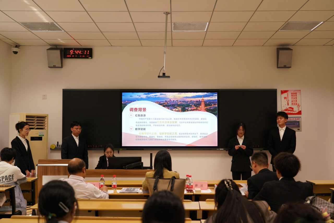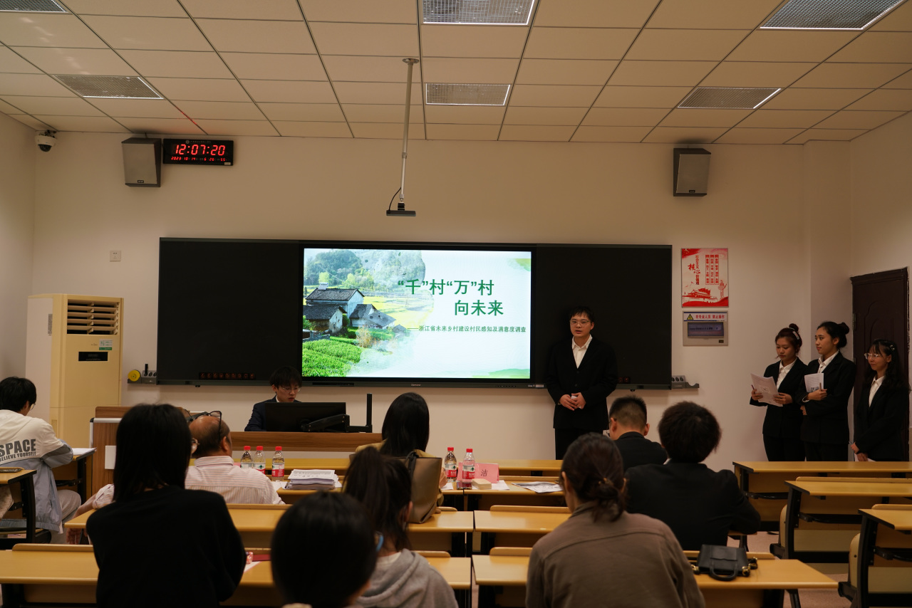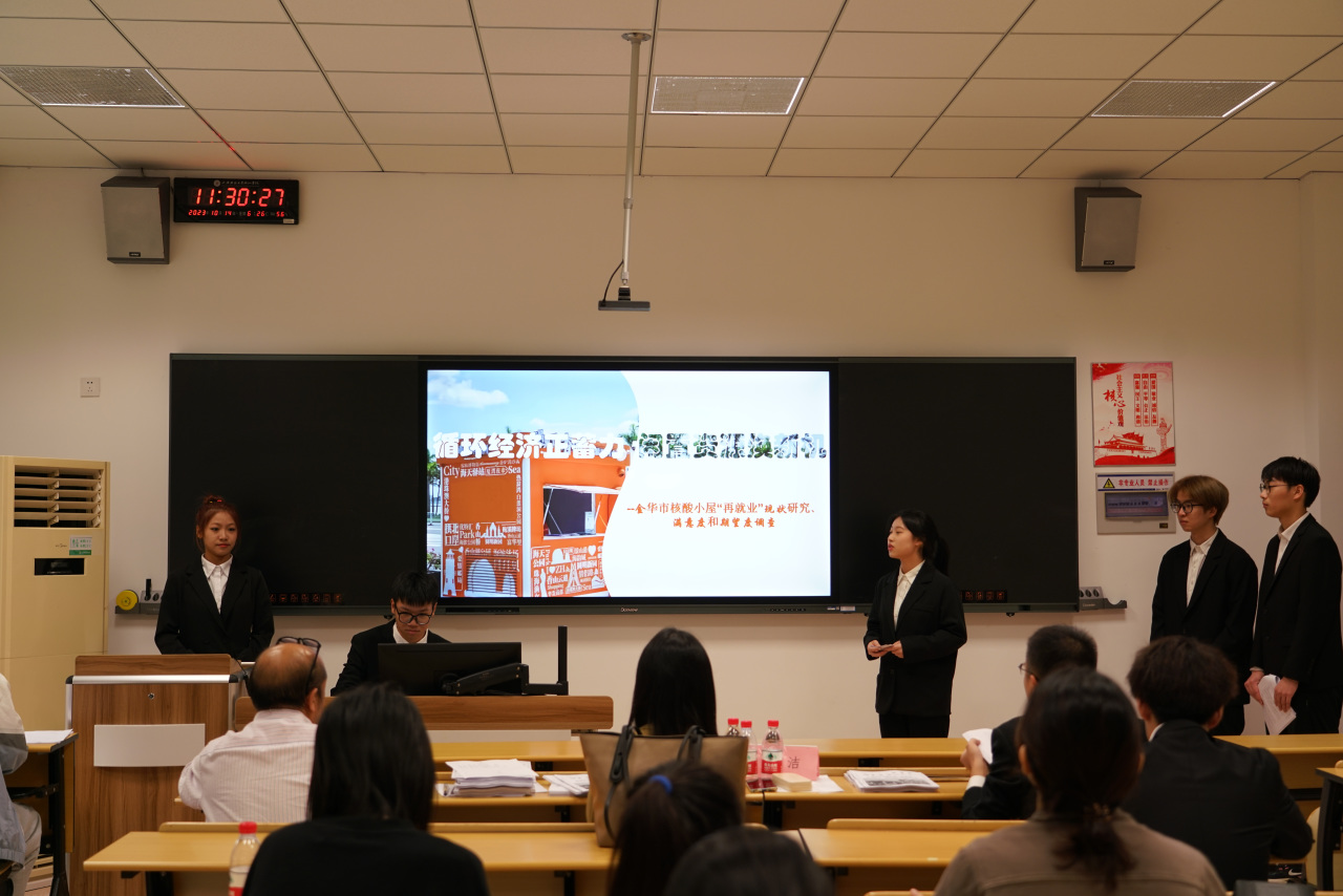 第二会场共有九支队伍进入此次答辩环节,他们围绕“HPV疫苗”“金华市红色旅游开发现状与策略分析”“旅游参与现状及满意度”等社会热点展开调研,他们将理论知识与民生民意相融,将调查结果应用到生活中。